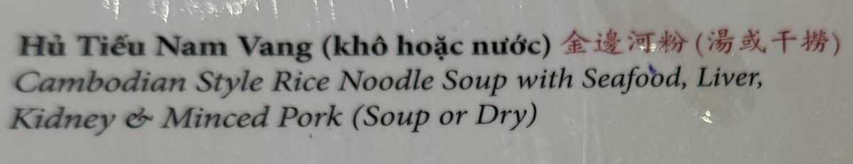 Nam Vang Style Rice Noodle with Seafood, Liver, Kidney And Minced Pork (soup Or Dry)